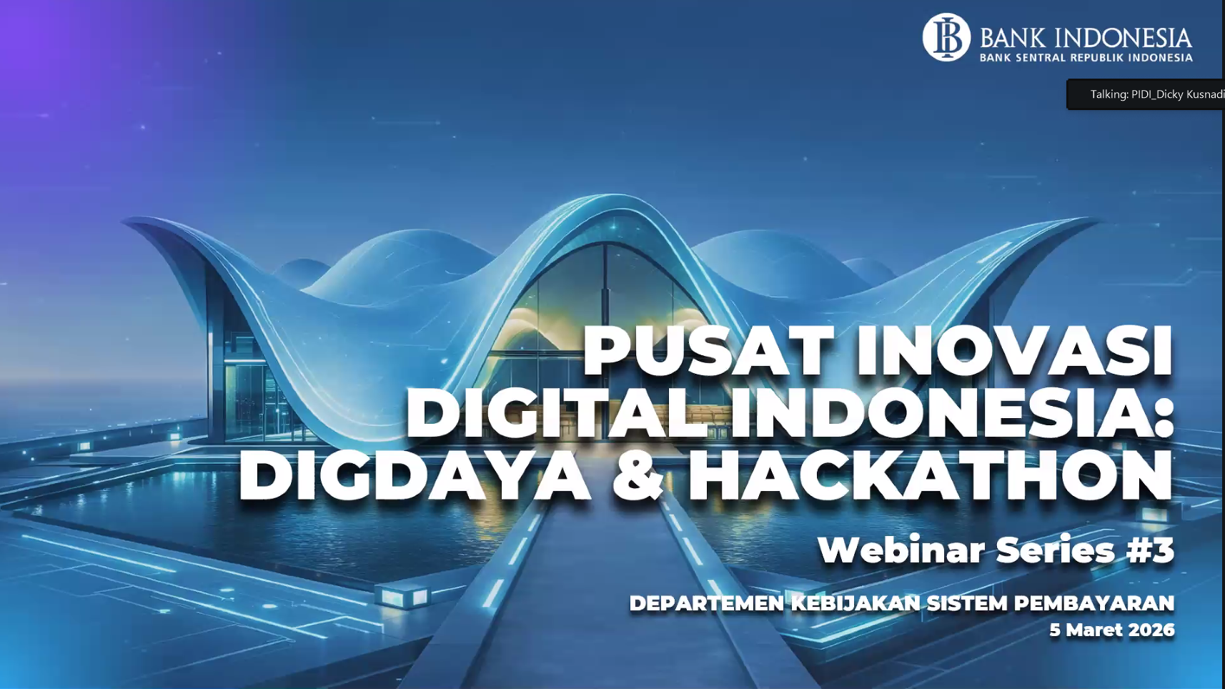 Pusat Inovasi Digital Indonesia (PIDI), menggelar Webinar Series #3 PIDI 2026 bertajuk “Sosialisasi Use Case Digitalisasi Keuangan Syariah” pada Kamis (05/03). Sosialisasi yang diadakan secara daring ini merupakan bagian dari rangkaian kegiatan “Digdaya x Hackathon 2026” yang diinisiasi oleh Bank Indonesia bersama Otoritas Jasa Keuangan, industri, serta mitra strategis lainnya.